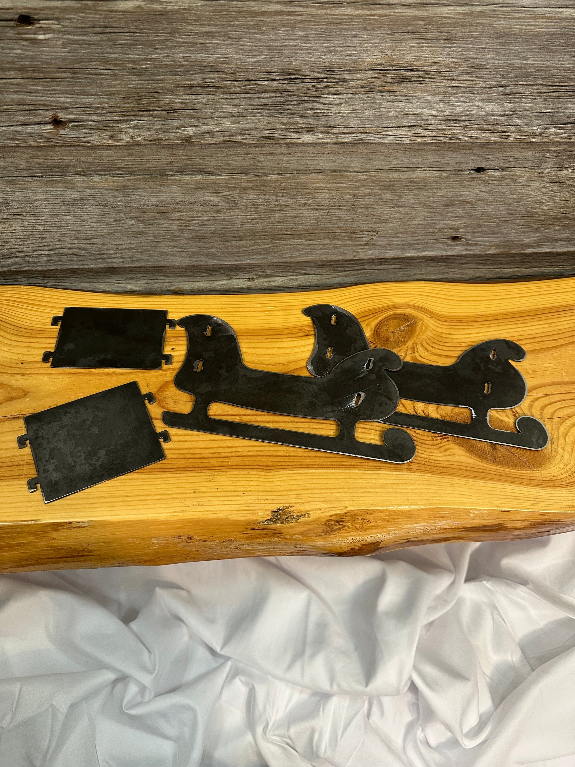 Cut with our CNC Plasma table out of 14-gauge high grade steel. Each Sleigh is 4 ¾” tall by 3 ¾ “ wide and 8” long and only weighs 1 lb.
